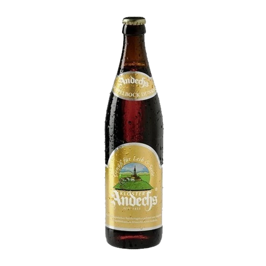 This world famous bock from Bavaria’s Holy Mountain is not meant to be rushed, but savoured slowly. As solid as a rock, Andechser Doppelbock Dunkel presides over the evening meal with a colour reminiscent of dark copper with nuances of fiery red. Its clear gleaming look harmonises with its firm, fine pored head. Also the aroma delights the connoisseur: soft roasted accents and a nuance of dried fruit carrying a vein of caramel. This Doppelbock Dunkel from Bavaria’s Holy Mountain presents a pleasant effervescence. And then there’s the unmistakable flavour: mouthcoating and velvety, strong and yet pleasantly malty – a powerful, robust body. At the same time, it develops an easily recognisable sweetness, embraced in roasted cocoa and a light, bitter hoppiness. Concluding with a powerful punch, this Doppelbock departs with a lingering aftertaste of quality plain chocolate. A strong Doppelbock that embodies the centuries old Benedictine brewing tradition, sip by delicious sip.